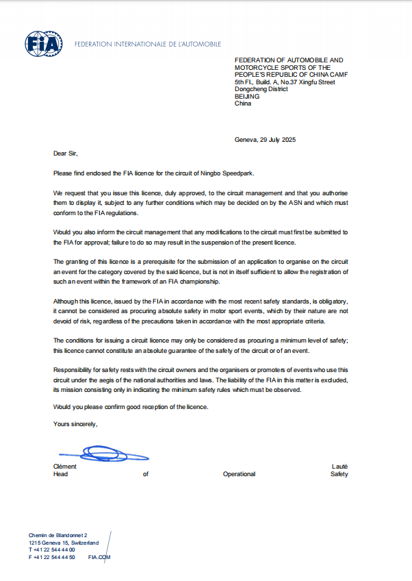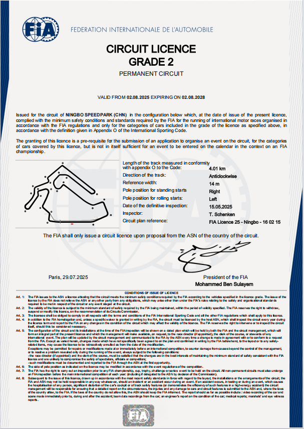 FIA二级赛道是仅次于F1赛道的最高等级认证,代表赛道可承办除F1、MOTO GP外所有国际顶级赛事(如F4、WTCR等)。此次复审通过,是对赛道安全性、设施完善性及运营专业性的极致肯定!新一轮认证将为宁波带来更多国际赛事、车手培训及汽车文化盛宴!这里不仅是职业车手的战场,更是每一位汽车爱好者的乐园!
